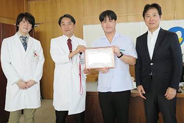 授与式には、医学部長の猪股雅史教授、消化器・小児外科学講座の二宮繁生講師、眼科学講座の武田篤信教授、前尾浩平医員が参加しました。
