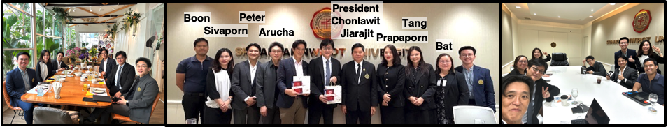 Srinakharinwirot University(SWU)At Srinakharinwirot University (SWU), we shared lunch with faculty members from the Faculty of Medicine (Dr. Arucha, Dr. Shoowit, and Dr. Sivaporn) and exchanged views on the potential for academic collaboration in a relaxed and informal atmosphere. Following this, we were given the opportunity to pay a courtesy visit to President Chonlawit Jiarajit and Vice President for International Affairs, Prapaporn Rojsiriruch, who expressed their positive interest in establishing a Memorandum of Understanding (MOU) between the two universities. We also held discussions with medical faculty members (Dr. Shoowit, Dr. Arucha, Dr. Sivaporn, Dr. Srisombat Puttikamonkul (Bat), Dr. Yamaratee Jamison (Tang), and Dr. Atthaboon Watthammawut (Boon)), exchanging views on future opportunities for educational and research collaboration, including discussions toward the conclusion of an MOU. During the meeting, Professor Kobayashi gave a presentation on the research activities and distinctive strengths of Oita University, helping to deepen the participants’ understanding of the university. |