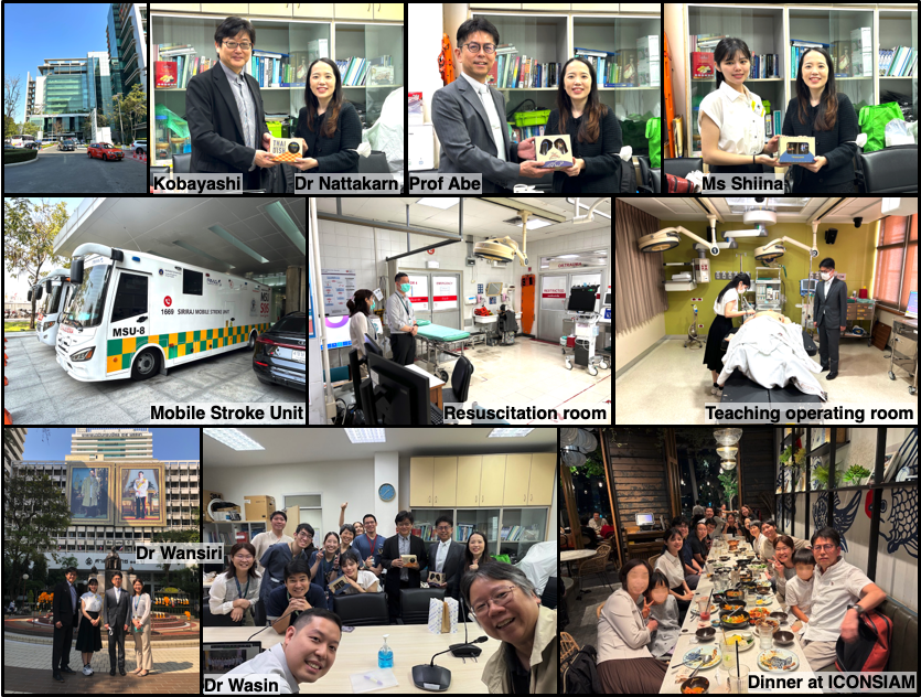 Department of Emergency Medicine, Siriraj Hospital, Faculty of Medicine, Mahidol UniversityDuring our visit to Mahidol University, we visited multiple campuses and departments. First, we visited the Department of Emergency Medicine at Siriraj Hospital, Faculty of Medicine, which is currently hosting Ms. Shiina, a fifth-year medical student from Oita University, for her clinical clerkship. Together with Professor Ryuzo Abe from the Department of Emergency Medicine, Faculty of Medicine, Oita University, we paid a courtesy visit to Dr. Nattakarn Praphruetkit, Head of the Department, Dr. Wasin Pansiritanachot, and Dr. Wansiri Chaisirin. At the beginning of the visit, Dr. Wasin gave a presentation outlining the department’s structure and educational system. This was followed by a guided tour of the emergency medicine facilities conducted by Dr. Wasin and Dr. Wansiri. Observing educational facilities and clinical training systems not available at Oita University provided a valuable opportunity to reaffirm the significance and added value of allowing our students to learn in this outstanding clinical environment. In the evening, we were kindly invited to a dinner hosted by the Department of Emergency Medicine at ICONSIAM, where we enjoyed authentic Thai cuisine and deepened our交流 in a warm and friendly atmosphere. During the dinner, Dr. Wasin expressed his interest in undertaking a short-term training program at Oita University under Professor Abe, reinforcing our sense that this visit has contributed to the further acceleration of international collaboration, including both student and research exchanges. |