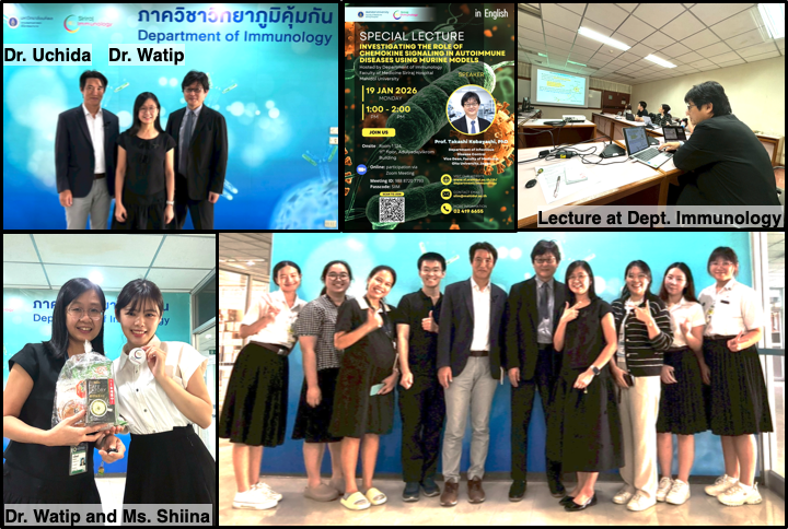 Visit to Thailand, January 11–22, 2026Prof. Kobayashi visited Thailand to hold discussions with several universities regarding future academic collaborations. Mahidol University Faculty of Medicine Siriraj Hospital, Department of Emergency Medicine kindly agreed to host a fifth-year medical student from our university for a two-week clinical clerkship beginning on January 12. A courtesy visit was made together with Professor Ryuzo Abe (Department of Emergency Medicine). Prof. Kobayashi also visited the Department of Microbiology, Faculty of Science, Chulalongkorn University, where he delivered a seminar and exchanged views with Professor Tanapat Palaga. In addition, discussions on ongoing collaborative research were held with Dr. Benjawan Saechue of Mahasarakham University. Furthermore, visits were made to Department of Immunology, Siriraj Hospital, Faculty of Medicine, and Department of Pathology, Faculty of Science, Mahidol University, and Faculty of Medicine, Srinakharinwirot University, strengthening academic ties and expanding opportunities for future research and educational exchange. |