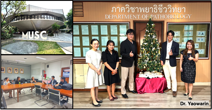 Department of Immunology, Faculty of MedicineAt the Department of Immunology, Faculty of Medicine, Mahidol University, Professor Watip has previously hosted medical students from Oita University as short-term exchange students. Ms. Shiina also conducted her laboratory rotation there during her fourth year and received valuable guidance from the department. During this visit, Professor Watip was formally visited by Dr. Tomohisa Uchida together with Dr. Kobayashi. In order to further strengthen academic collaboration between the two institutions, it is essential to develop a mutual understanding of each other’s research activities. Accordingly, Dr. Kobayashi delivered a seminar introducing his latest research findings, followed by lively and constructive discussions with researchers from the Department of Immunology. These exchanges provided an excellent opportunity to explore future directions for collaborative research. Both sides agreed to continue student exchange programs and to further accelerate researcher-to-researcher interactions. This visit proved to be a highly productive and meaningful step toward strengthening academic collaboration between the two institutions. |