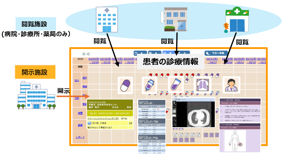 複数の医療機関で同じ患者さんの過去の治療歴や検査結果をすぐに参照できるため重複した検査や投薬を避け、より適切で安全な医療を提供できます。