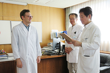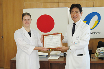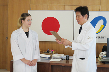 ドイツのデュッセルドル大学からクリニカル・クラークシップに参加していたLenaさん、Benさんの修了証書授与式が医学部長室にて、令和7年9月1日(月)・9月2日(火)に行われました。