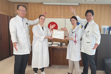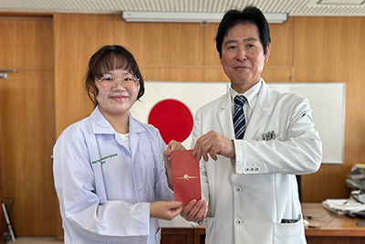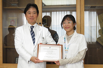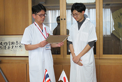 令和7年8月6日(水)、タイのプリンス・オブ・ソンクラー大学からクリニカル・クラークシップに参加していたKankraoさんの修了証の授与が行われました。