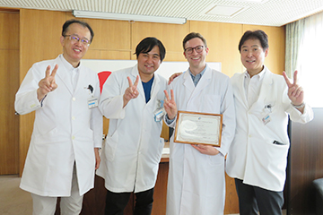 授与式には医学部長の猪股雅史教授、病院長の井原健二教授、立山香織准教授、後藤洋徳助教が参加しました。