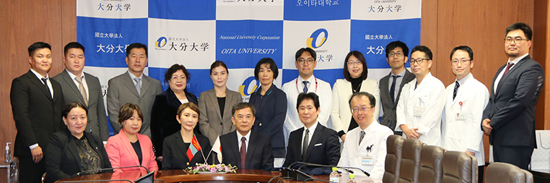 令和7年12月1日、大分大学医学部と部局間交流協定を締結しているソンギノハイルハン地区総合病院(モンゴル)から、病院長を始めとする8名の訪問団が、挾間キャンパスを訪問されました。ソンギノハイルハン地区総合病院とは、山岡副学長が共同研究をすすめていることがきっかけとなり、令和7年8月11日に協定を締結し、今回の訪問に至りました。