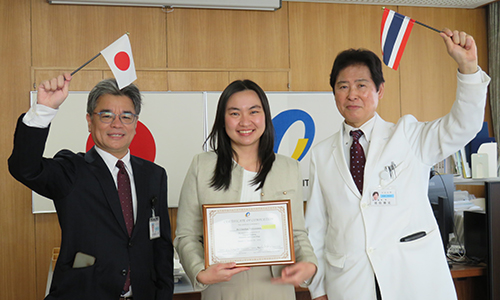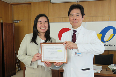 令和8年1月27日(火)、タイのプリンス・オブ・ソンクラー大学からクリニカル・トレーニングに参加されていたChanikan Wiriyasumon先生の留学の修了証の授与式が行われました。