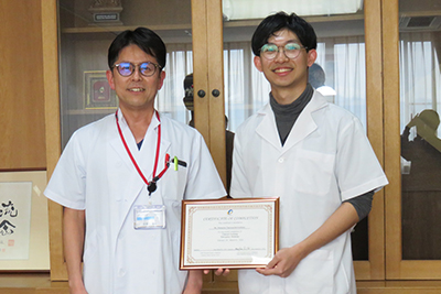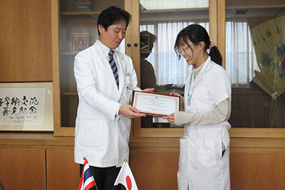 令和7年11月26日(水)、河北医科大学からクリニカル・クラークシップに参加されていたLuさん、Wangさんの2名の留学の修了証の授与式が行われました。