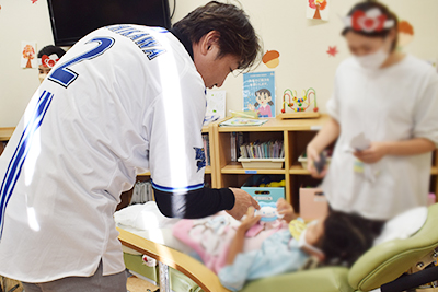 11月23日、株式会社サンリオのキャラクター・ハローキティが、社会貢献活動「Sanrio Nakayoku Project」の一環として、サンリオベースボールアカデミー監督の原辰徳さん、元巨人・斎藤雅樹さん、横浜(現DeNA)、ソフトバンクで活躍した大分出身の内川聖一さんとともに、小児科病棟を訪問しました。
