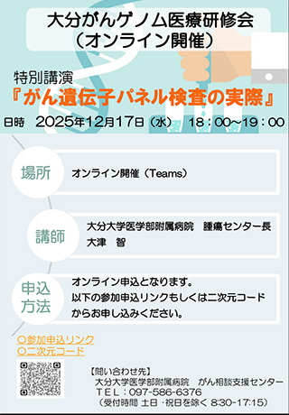 12月17日(水)大分がんゲノム医療研修会を開催します。(参加申込受付中!)[がん相談支援センター]対象:医療従事者