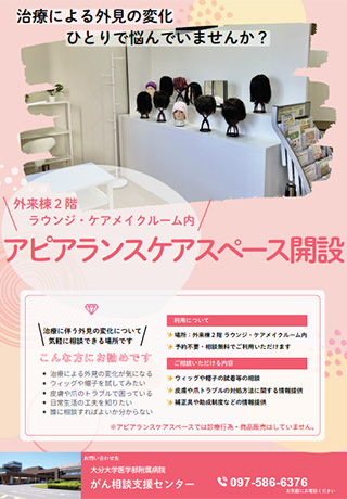 外来2階のラウンジ・ケアメイクルーム内に"アピアランスケアスペース"を開設しました[がん相談支援センター]