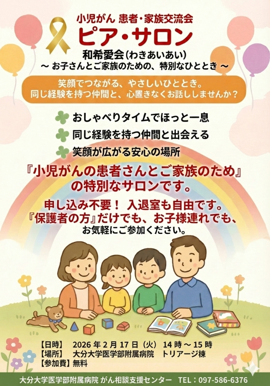 - 予約受付/お問い合わせは がん相談支援センターへご連絡ください。電話番号:097-586-6376