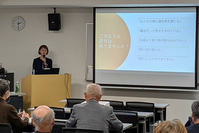 講演後には質疑応答の時間を設け、参加者の皆様から時間内に答えきれないほど多くのご質問をいただき、頭頸部がんに対する関心の高さがうかがえました。