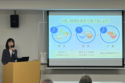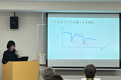 今回の講演では、看護師2名と栄養管理士1名が心不全について、予防やセルフケア、食生活について、それぞれお話ししました。