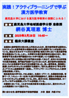 On March 28, 2025, we held a seminar and workshop entitled “Practical Education in Kampo Medicine through Active Learning: Experiencing the Kampo Curriculum at Kagoshima University” in the main clinical lecture hall.